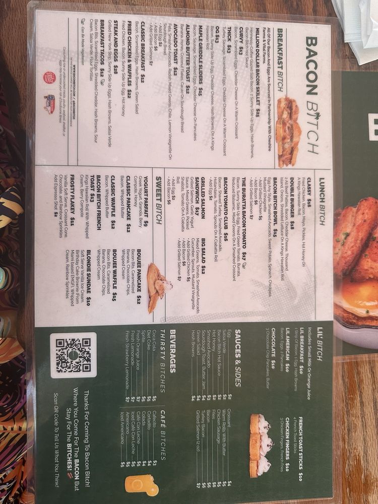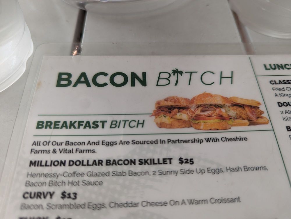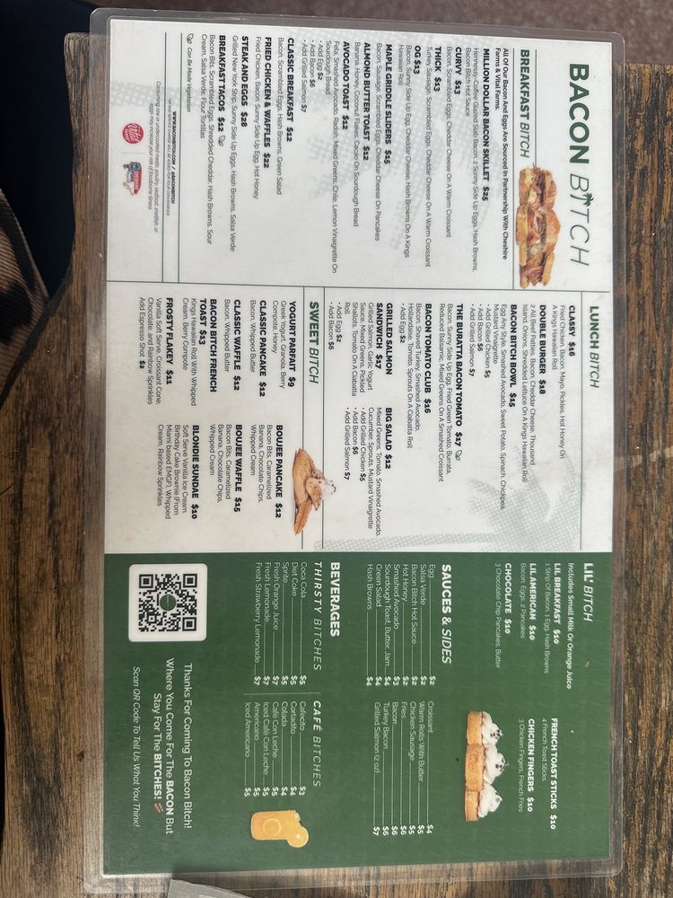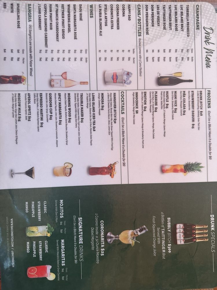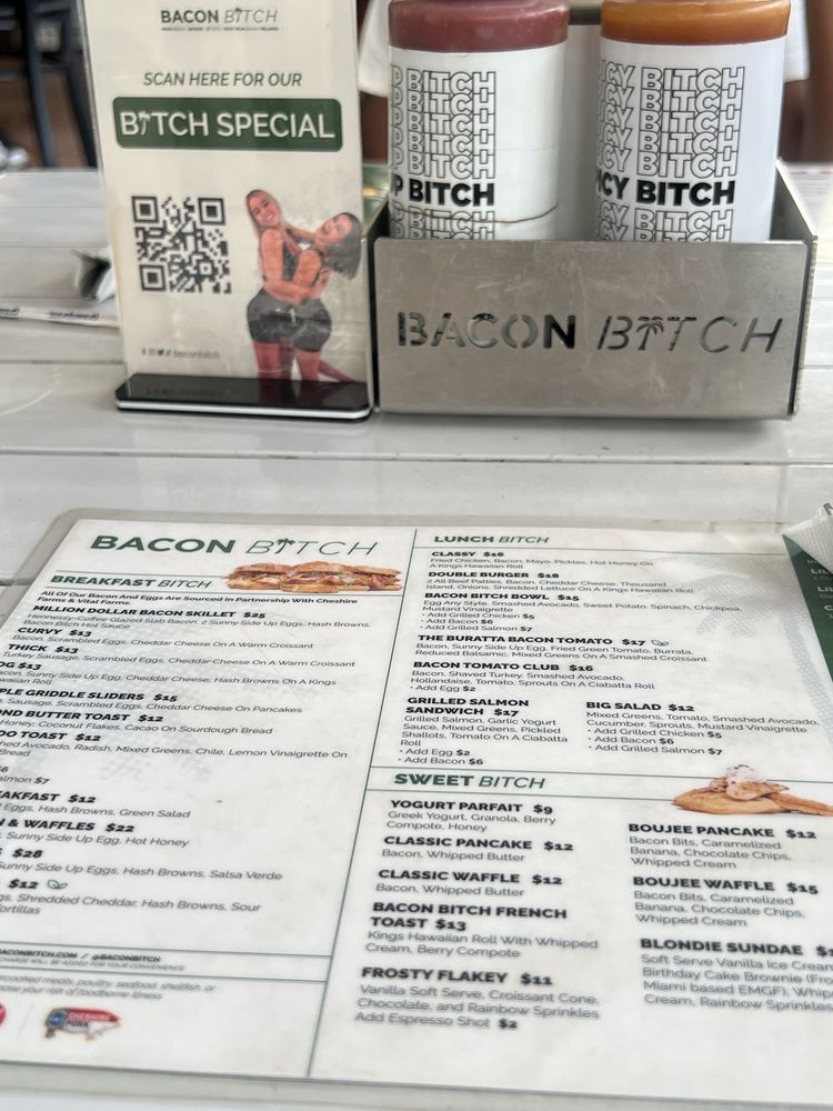 Introducing Bacon Bitch, a trendy cocktail bar in Miami Beach that brings a unique dining experience with a lively atmosphere. The menu at Bacon Bitch features breakfast, brunch, and sandwiches with options for vegans and limited vegetarians. The passionate cocktails and juicy double burgers are standout dishes praised by customers for their flavor and presentation. The energetic vibe, friendly staff, and complimentary shots add to the overall dining experience. Despite some wait times, the service is attentive and enjoyable. The gender-neutral restrooms, outdoor seating, and diverse payment options make Bacon Bitch a welcoming and inclusive spot for groups and individuals alike. Don't miss out on the fun and delicious offerings at this hip establishment.
